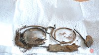 - Мы зачищали, и в какой-то момент я увидела, что кусочки железа, мне стало интересно, я решила посмотреть, вытащила, там оказалась коробочка. Сначала ее положили в воду, чтобы она размякла, потом можно было узнать, что там были очки, - сказала участница отряда «Поиск» школы №2 Ревды Ульяна Белоусова.