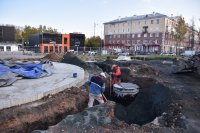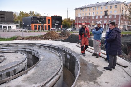 Первый заместитель главы города Олег Клочков рассказал, что камера, где будет располагаться оборудование для управления фонтаном, закончена. Это будет бетонная коробка под землей, сейчас виден ее контур, но что-либо размещать в ней пока нельзя, да и нет смысла.