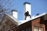 Теперь что касается крыш. Мы, как и все компании, начали чистить снег с января — до этого его практически не было. С начала года мы начали убирать места, где скапливается большой снег. Со скатных крыш мы обязаны его убирать, когда толщина слоя превышает 30 см, а если снег начинает таять и леденеть, то и при меньшей толщине.